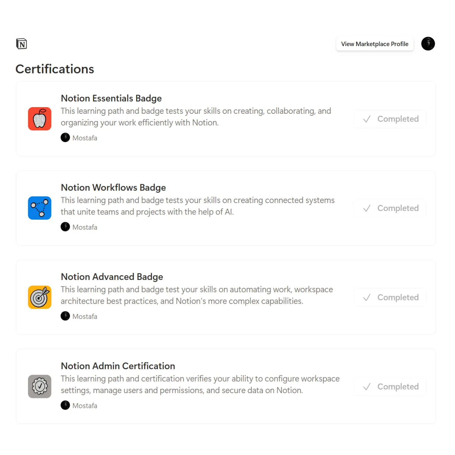 By 2024, when Notion launched its marketplace, I was among the early creators. I started my YouTube channel. Built a small studio. Bought a camera. Started teaching. When Notion Academy opened, I earned certifications up to Notion Certified Admin. But what truly mattered wasn’t certificates. It was impact.