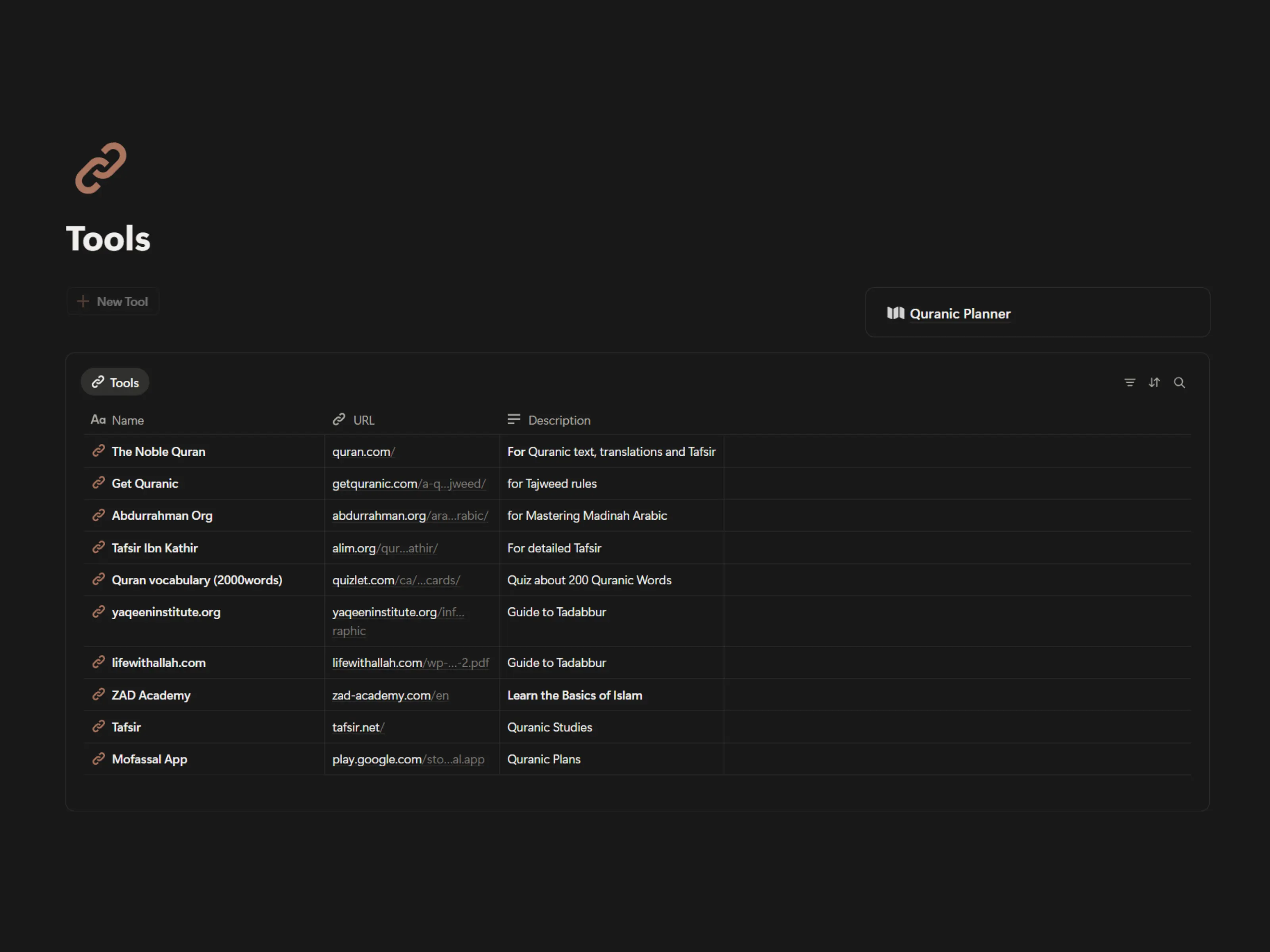 A curated collection of useful tools and resources to support your Quran learning and reflection journey.