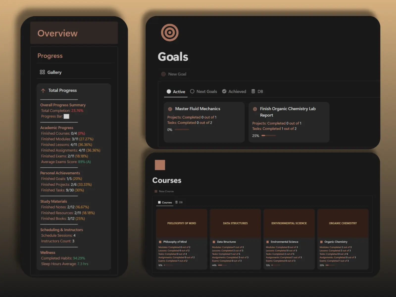 Get a complete overview of your academic and personal growth — from finished courses and assignments to achieved goals and habits. Stay motivated with real-time progress insights.