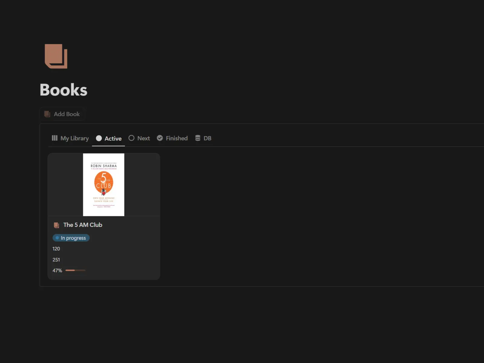 Track your current and past readings, with progress bars, categories, and personal ratings.