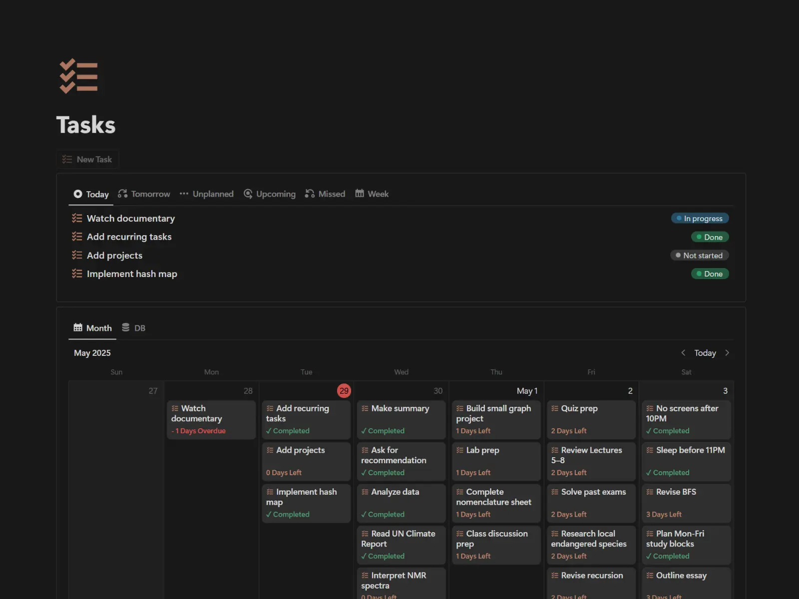 A calendar view that brings together your exams, tasks, notes, and events all in one place.