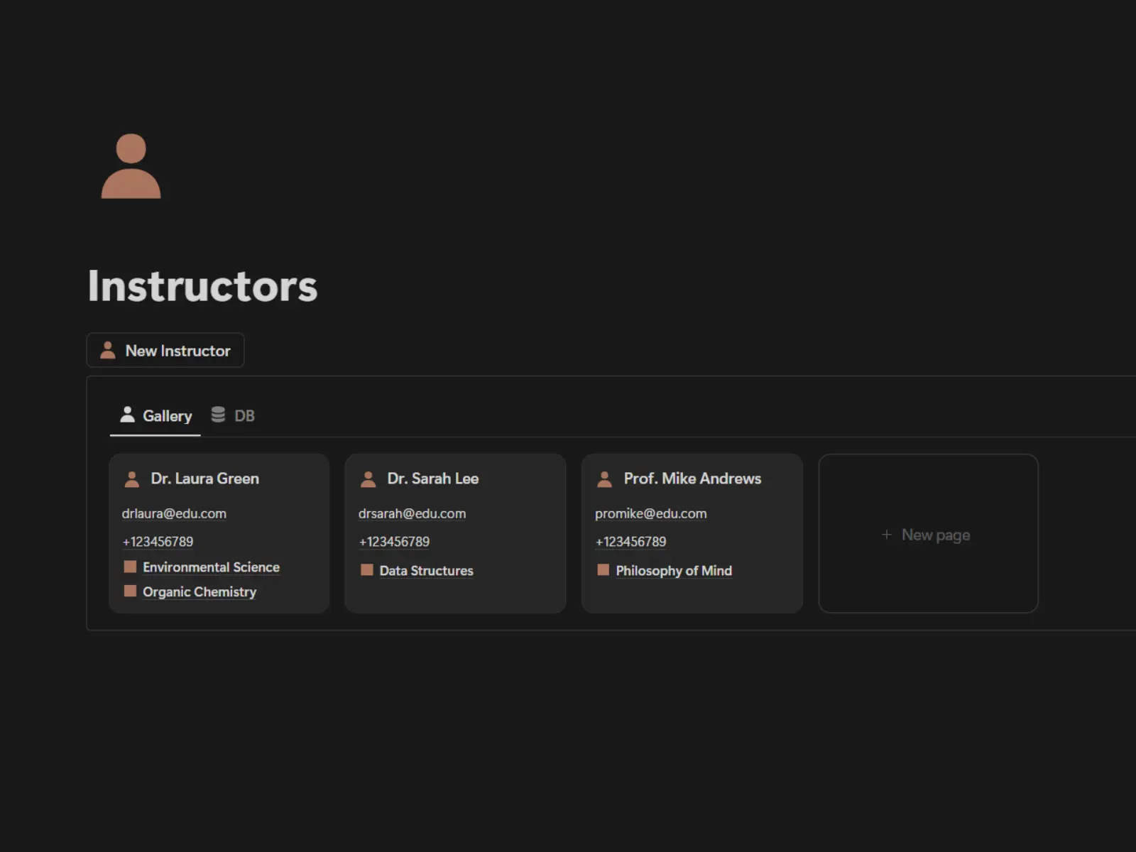 Manage details for all your professors and instructors, including contact info and courses they teach.
